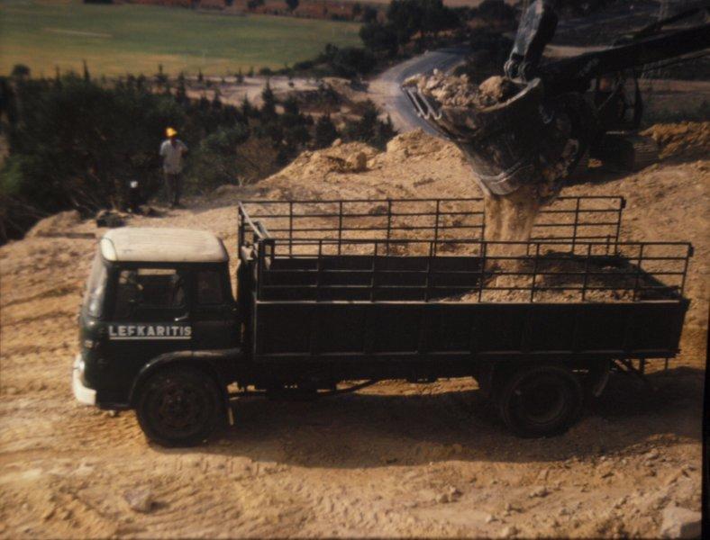 Annual Camp, 1972, CyprusThis was our second vist to sunny Cyprus in two years. See maps & background info above. Plant Troop (as the plant ops called it, but officially plant section of SHQ) were tasked to strip the top off a hill overlooking the main road not far from Dhekelia barracks and move the spoil further down. The plant was quite decent army stuff, Ruston Bycyrus and Hymac excavators, A DC6 crawler tractor and a wheeled loading shovel (which I don't recognse now). But the tippers to shift the spoil to its new site was local Cypriot crap frequently breaking down. One of the better looking ones was the Bedford seen here. Unfortunately the hydraulics didn't work, the driver winding the tipping gear manually with a stilson wrench. Took hours. Cpl Peter Cox recalls being woken early one morning (by Bob Shaw ?) a couple of days after arriving in Cyprus to be told he was sleeping in the wrong place. Apparently he had been promoted Sgt overnight and had to move to the Sgt's mess for breakfast. But only after being properly dressed with three chevrons. The only time he was ever late for a meal. All the photos here were taken as 35mm slides, and re-photographed recently from their projected image on a not very taut white screen. I hope to improve the quality later. back to top of page |