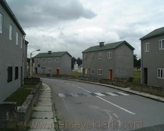 ![]() Semi detached "council houses" ![]() Inside of gates at Tin City |