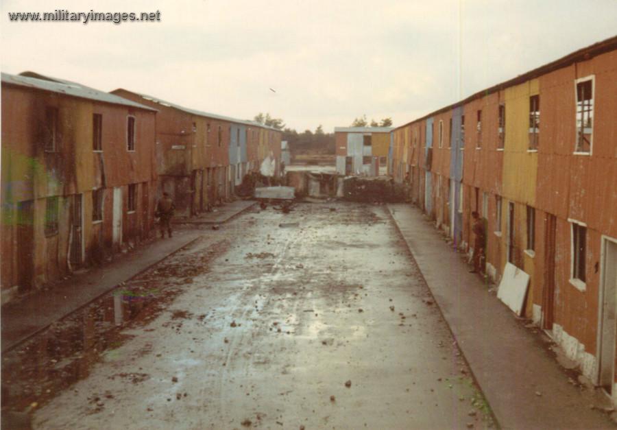 Tin CityFrom a 217 plant operator:"One day I was detailed to work in the Sennelager Training Area with a Muir Hill LWT - Light Wheeled Tractor - and was led to a site a few miles from our base by the Plant Troop Sgt, Ted Allen. I had to dig a trench around a house, but told not to enter the building beause it was booby-trapped. Food and fuel were promised for later on and off he went.[Webmaster's note: The photos here were all taken inside the compound, I'll post the credit when I find the details.] |