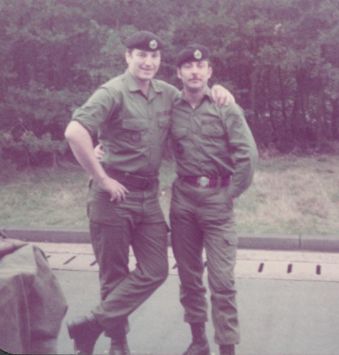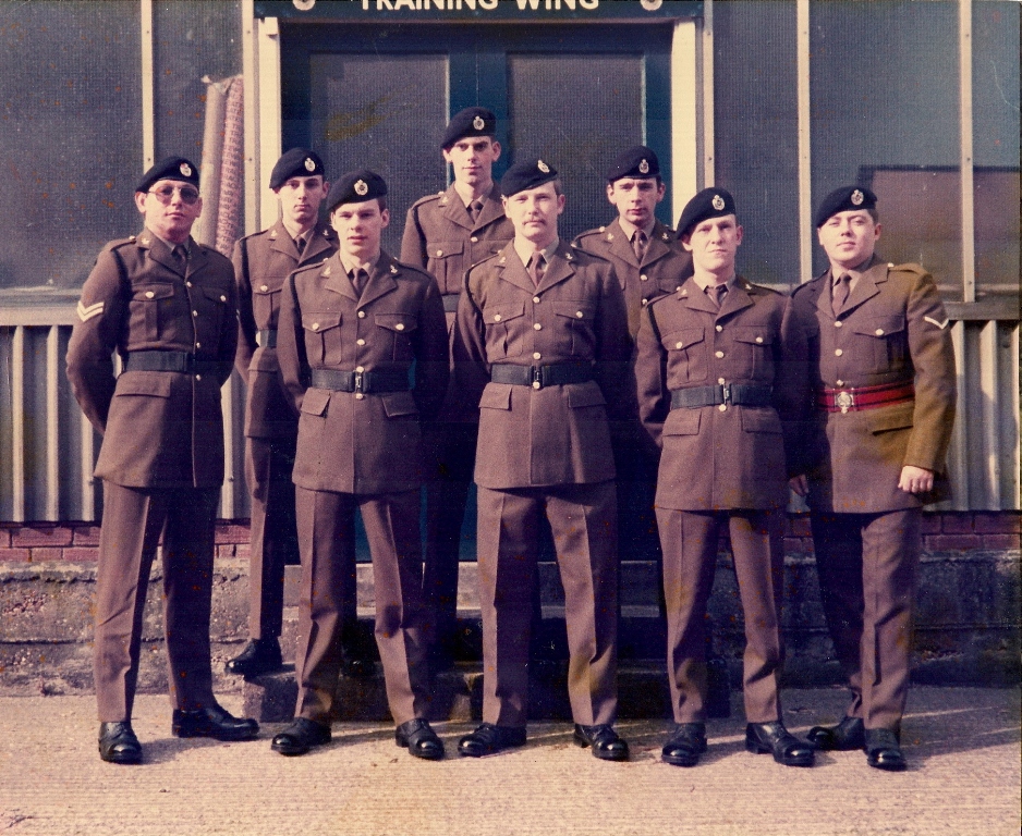 ![]() Photo, names and info courtesy of John Bustin (217: 1980 - 1989) Part of One Troop outside One Troop's stores (marked Training Wing ?) All poshed up in No2s ready to go to York for the home-coming parade of 2 Div which the Queen was inspecting. Front: Cpl John Kean; Alan Tyler; Alex Savage; Mark Harris; L/Cpl Micky Newman (Webmaster: I was nearly always unconventionally dressed, too.) Rear: Dean Peavey; Mark Bowen; John Bustin. Early 80s back to top of page |